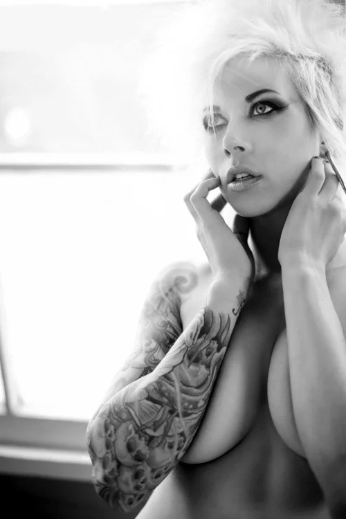 Ню #ЧерноБелое #блондинки #большиесиськи #белье #ложбинка
