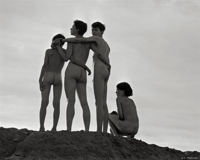 Саша, Ольга, Миша и Костя. Финский залив, 2001 (Ольга и сыновья)